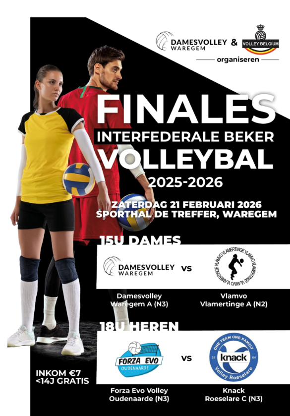 TERUGDAMESVOLLEY WAREGEM & VOLLEY BELGIUM ORGANISEREN FINALES INTERFEDERALE BEKER